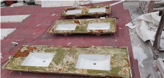 Prefab Green Onyx Bathroom Countertop Vanity Top